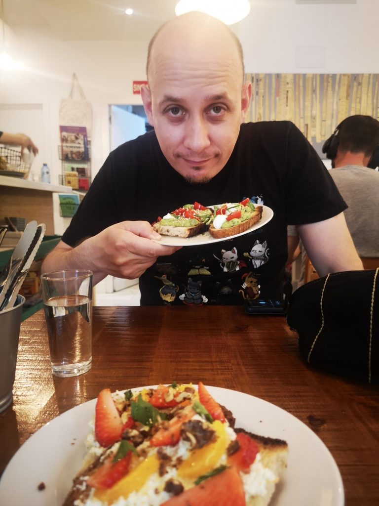 Our plans for Madrid are easy, relax and see. We originally decide to make a Segway Tour and see IKONO on day one, for tomorrow the Zoo and Aquarium are on our fixed schedule. But our first stop is PLENTY, our breakfast stop. Not far from central Station just behind a few jardins, several nice breakfast spots are close by, we pick some very tasty and enjoyable toasted sourdough breads and are anxious for the Madrid experience which we will try to cover with a bird day pass to recover from yesterday’s steps a bit.